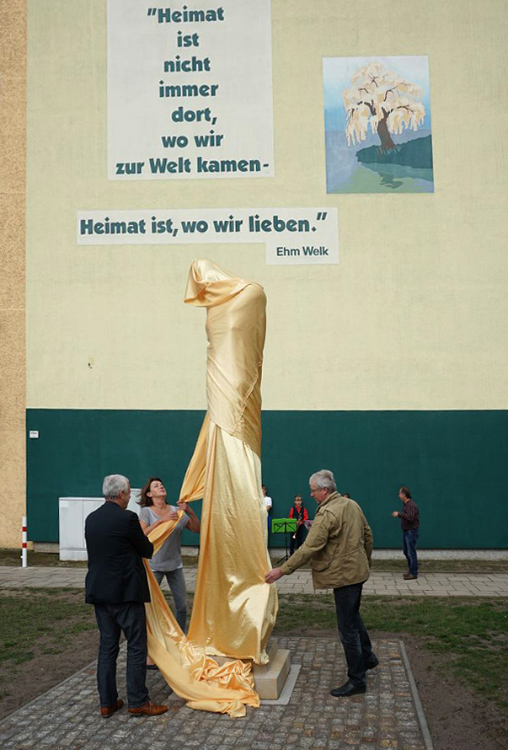 Dieser Standort befindet sich, passend zur Thematik, nahe der Ehm-Welk-Straße und unmittelbar an der Giebelseite eines Wohnhauses, welches das Zitat „Heimat ist nicht immer dort, wo wir zur Welt kamen – Heimat ist, wo wir lieben“ von Ehm Welk trägt.