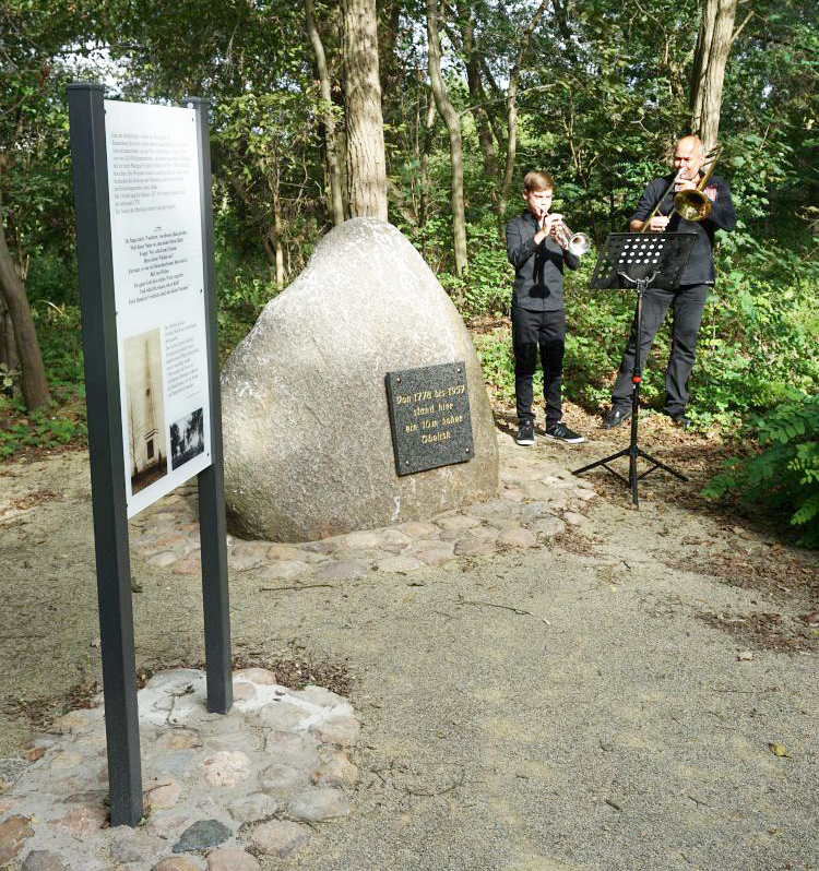 Der Schwedter Heimatverein widmete sich sowohl der Parkgestaltung als auch der Errichtung des Obelisken. Es sollte ein Erinnerungsort geschaffen werden. Durch materielle und finanzielle Unterstützung war es gelungen, genau an der Stelle, an der der Obelisk einmal gestanden hat, einen Erinnerungsstein setzen zu lassen. Um eine Aufklärung vor Ort für Jedermann zu ermöglichen, wurde in Zusammenarbeit mit der Stadt Schwedt/Oder eine Schrifttafel aufgestellt und die Gestaltung des Umfeldes vorgenommen.