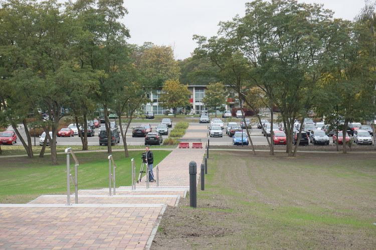 Die Zufahrt zum großen Parkplatz über die Auguststraße hat sich in der Vergangenheit bereits etabliert. Die direkte Auffahrt zum neuen Haupteingang wurde Ende Oktober über die Berliner Allee als verkehrsberuhigte Zone und (vorläufige) Einbahnstraße in Betrieb genommen. Direkt vor dem Eingang stehen dann zwei Behindertenparkplätze, zwei Taxi-Freiflächen und sechs Kurzzeitparkplätze zu Verfügung.