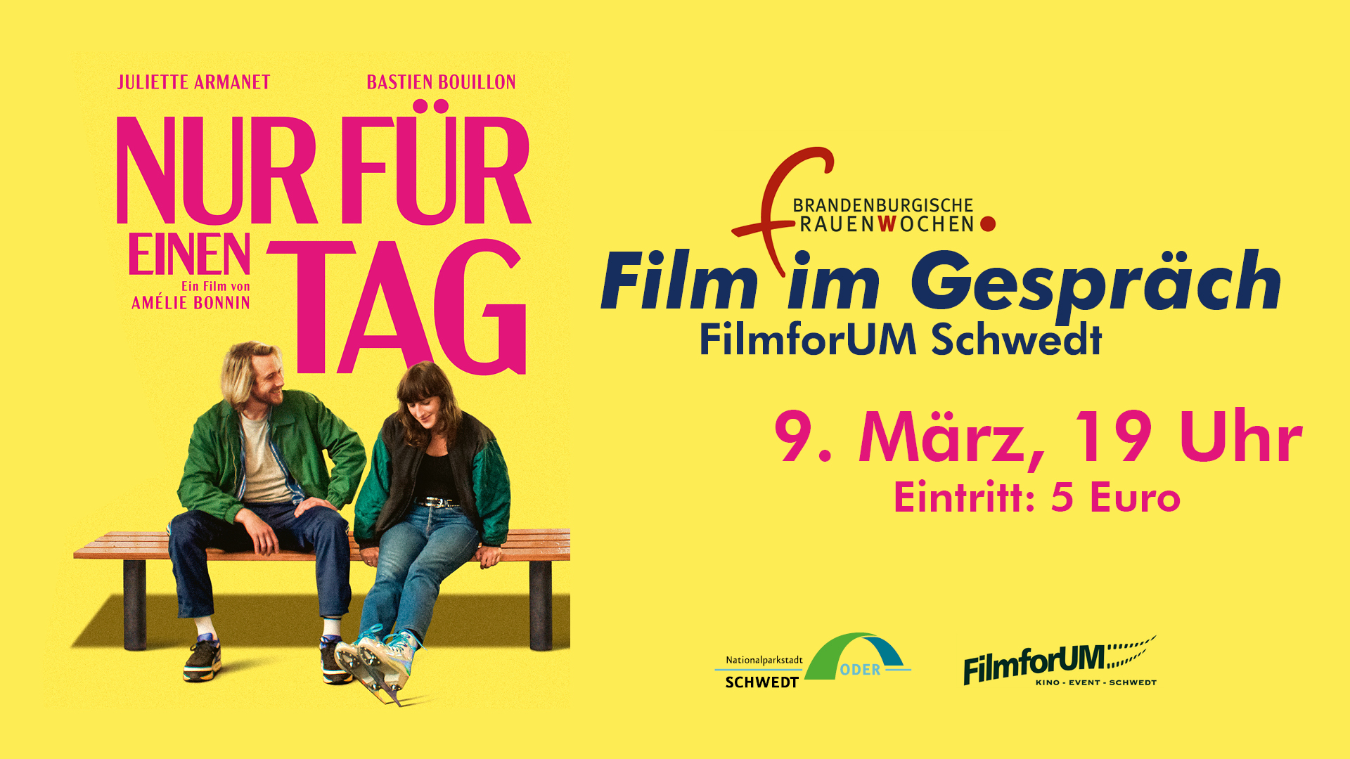 Eintritt: 5 € (Karten erhältlich im FilmforUM), veranstaltet von: FilmforUM in Kooperation der Gleichstellungsbeauftragten der Stadt Schwedt/Oder, www.filmforum-schwedt.de